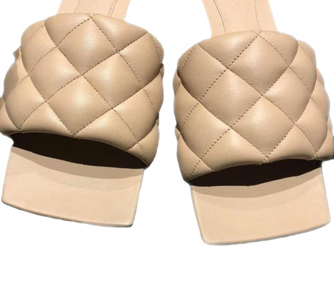 Beige Padded Quilted Leather Flat Slides