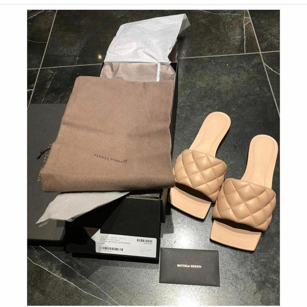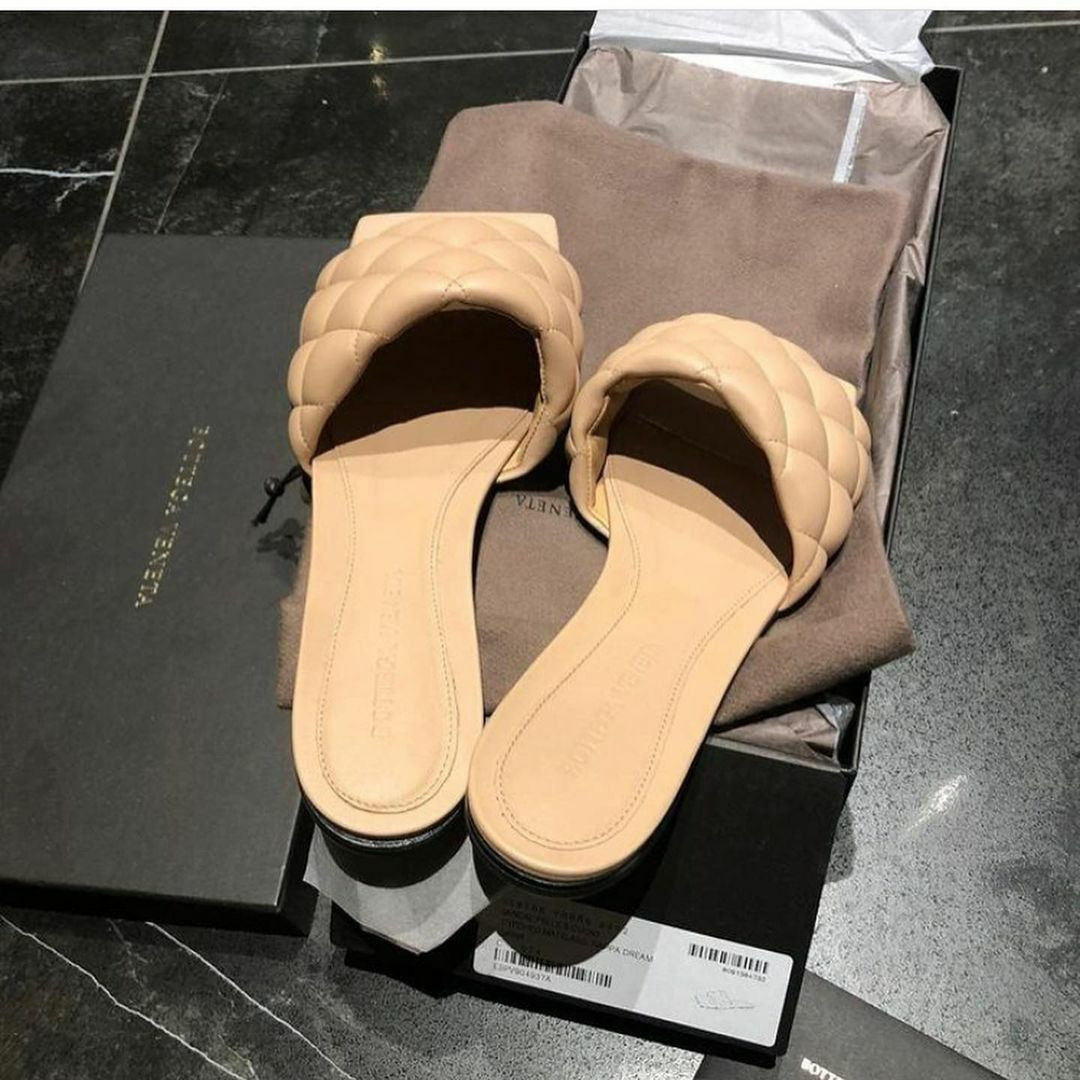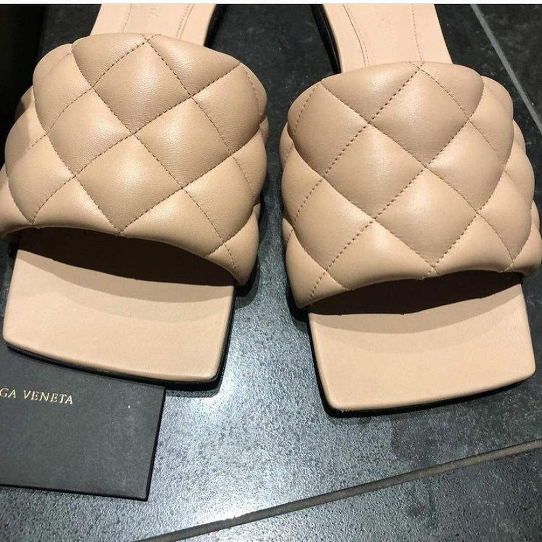Authentic pre-owned Bottega Veneta Beige Padded Quilted Leather Flat Slides. Worn twice. In excellent condition.