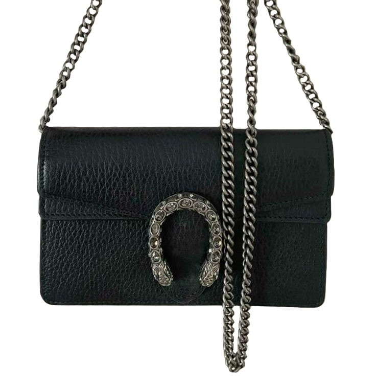 Black Pebbled Leather Dionysus Super Mini Chain Bag