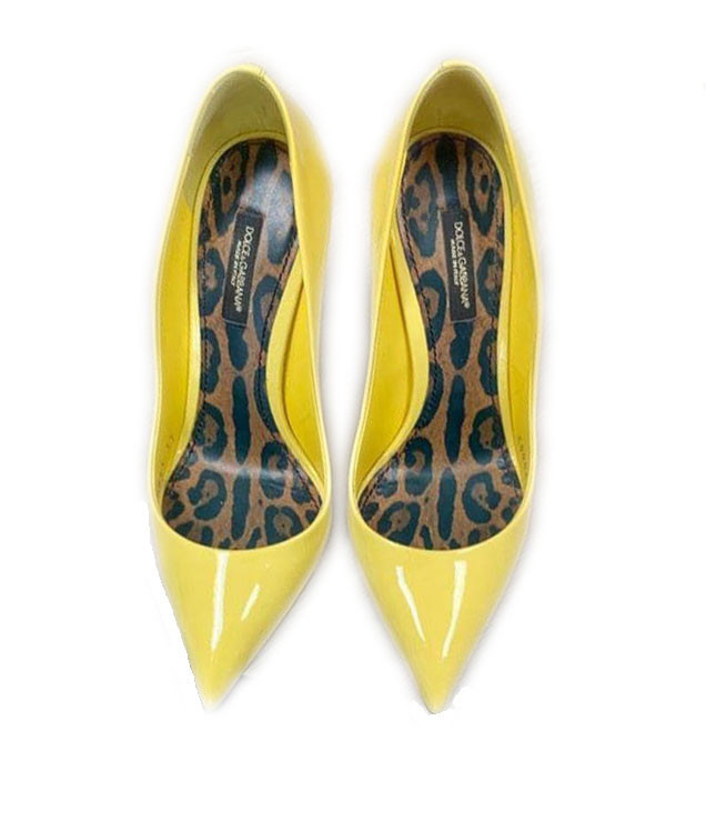 Colorful luxury authentic Dolce Gabbana Yellow Patent Leather Pump. Like new.