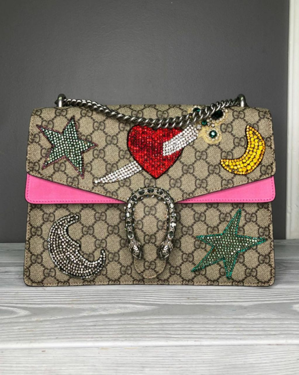 GG Coated Canvas Embroidered Medium Dionysus Bag
