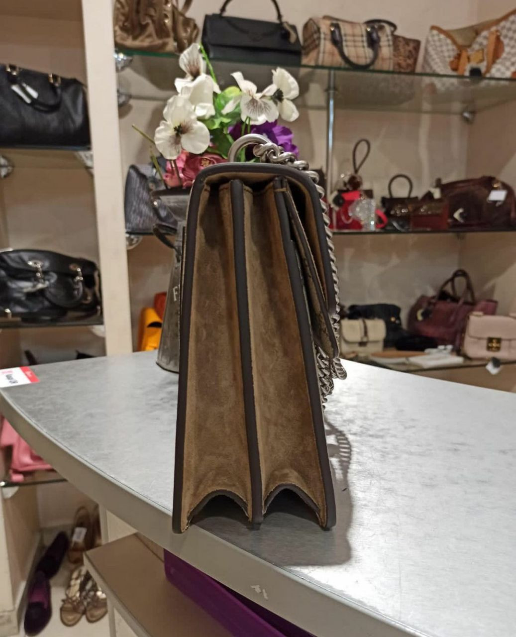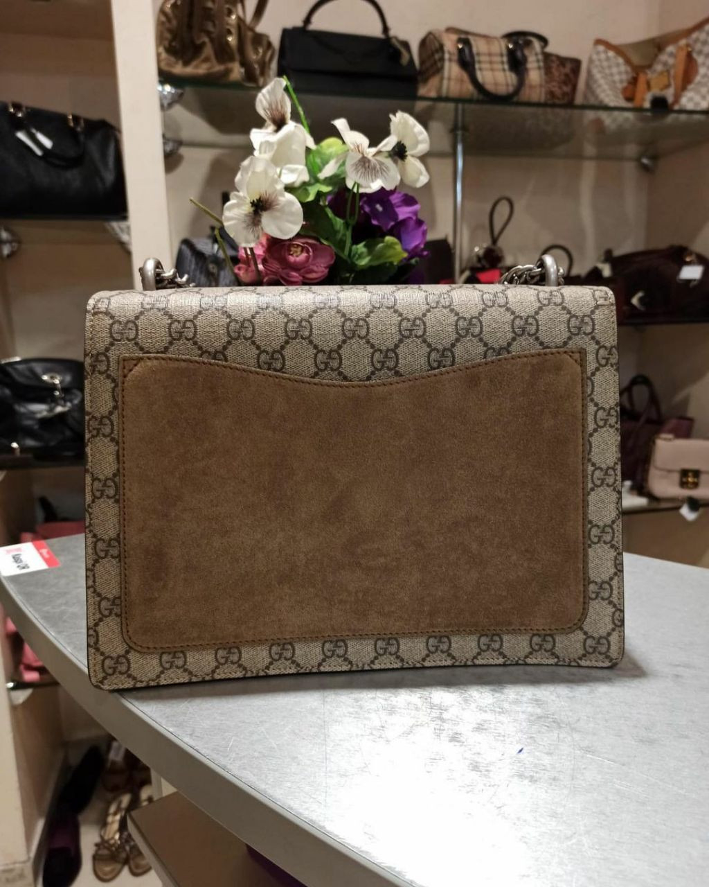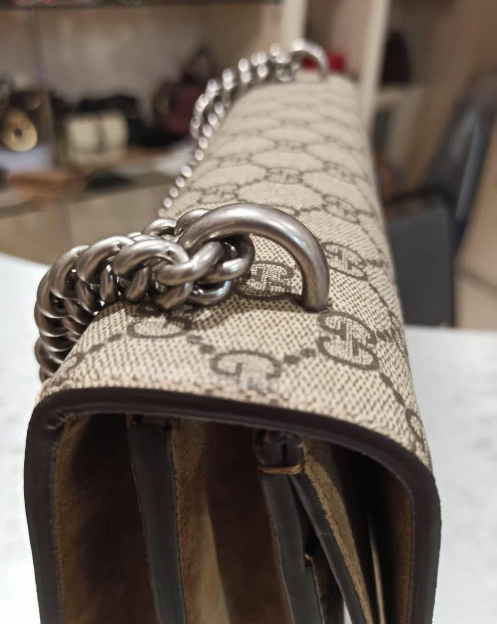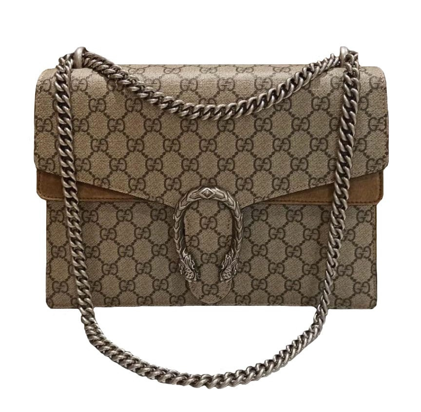 Authentic pre-owned Gucci GG Supreme Coated Canvas Medium Dionysus Shoulder Bag. Like new. Retail price 2650$. Crafted from classic GG canvas, this handbag from the Italian fashion house features an original clasp with tiger heads in antique silver tone. The accessory is completed with a chain strap, allowing to carry the product in different ways. Such an addition to the image will delight connoisseurs of fashionable and timeless designs.