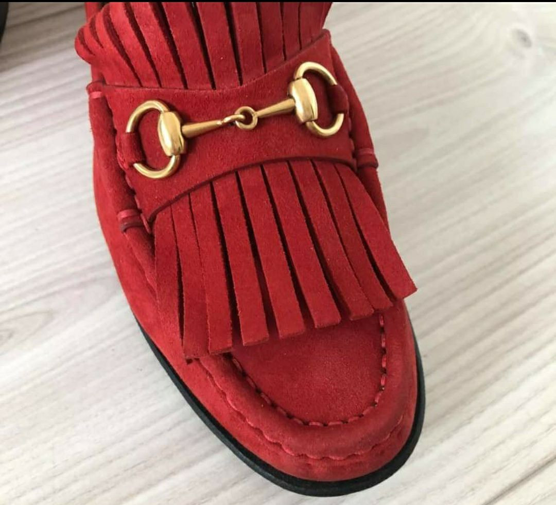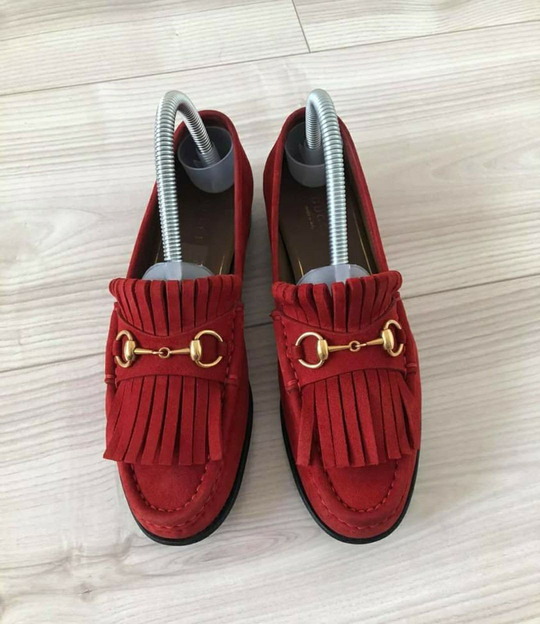 Authentic pre-owned Gucci Horsebit Fringed Suede Loafers. Gently used. In very good condition.