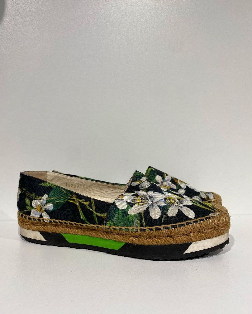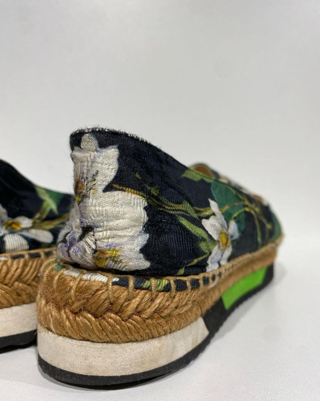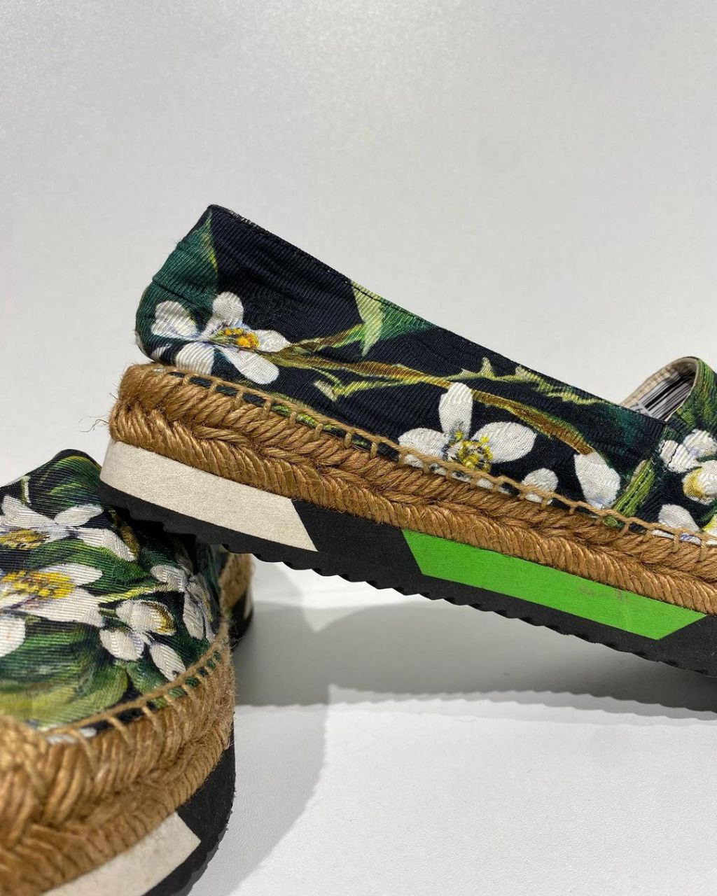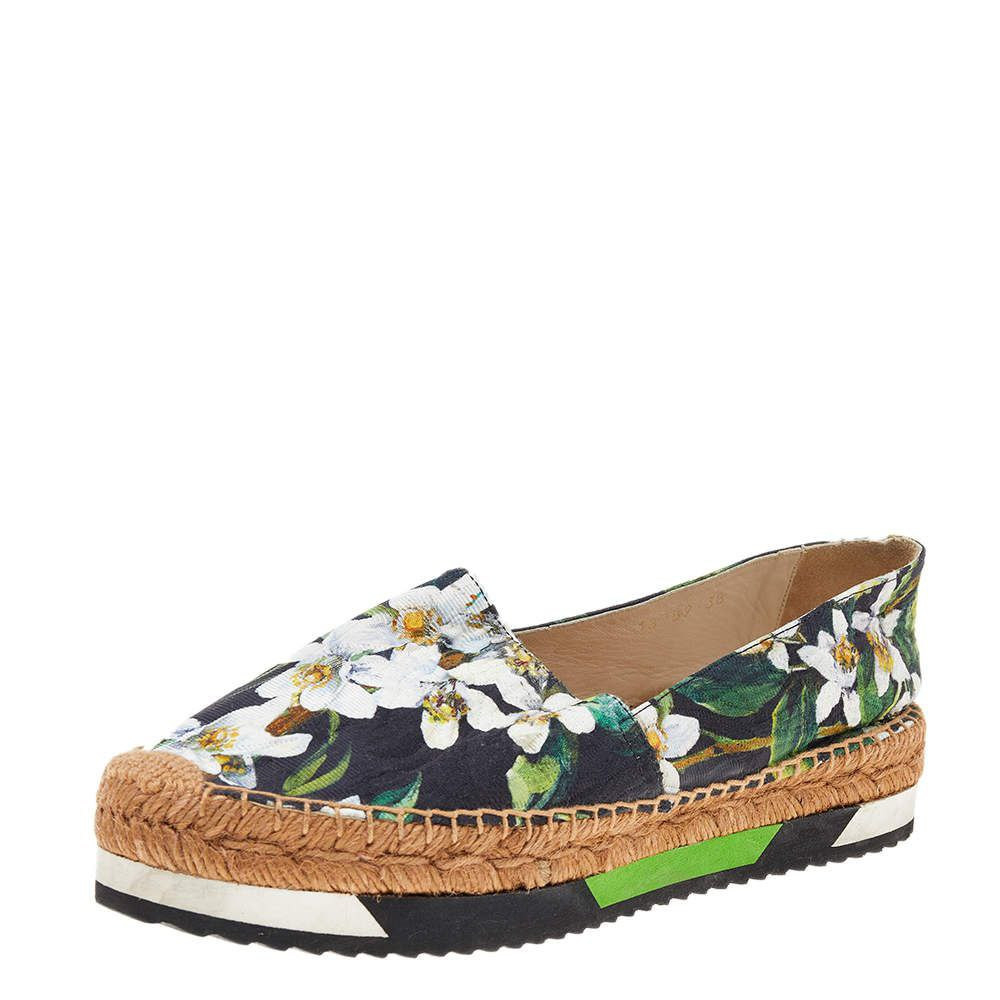 Authentic Floral Print Brocade Fabric Espadrille Flats Multicolor from Dolce & Gabbana. Like new.Shoes from a famous Italian brand will favourably emphasize its owner's great taste and irresistibility. Featuring an elegant floral print, these textile espadrilles will become a great addition to women's summer looks, delighting with comfort and durability.