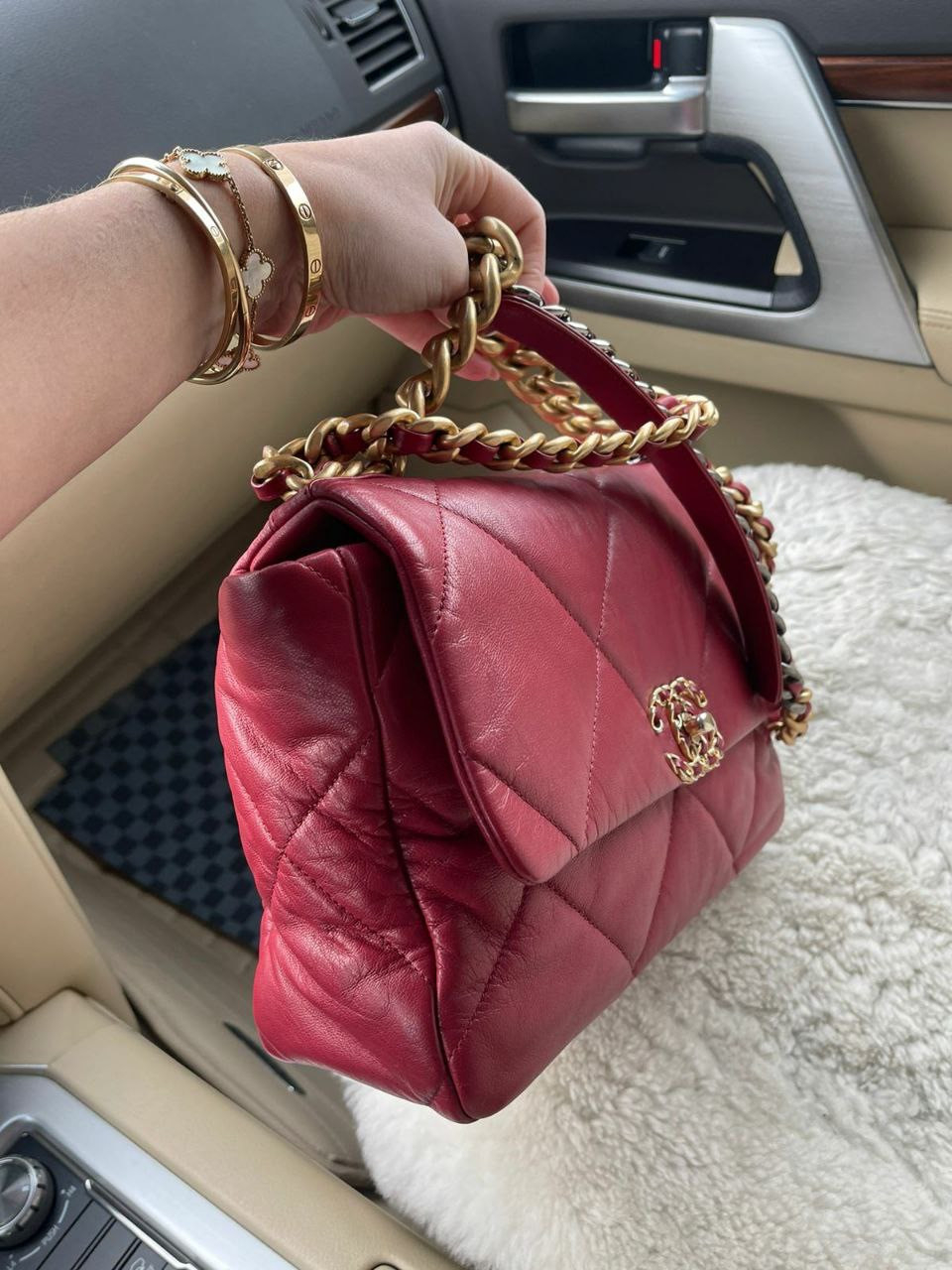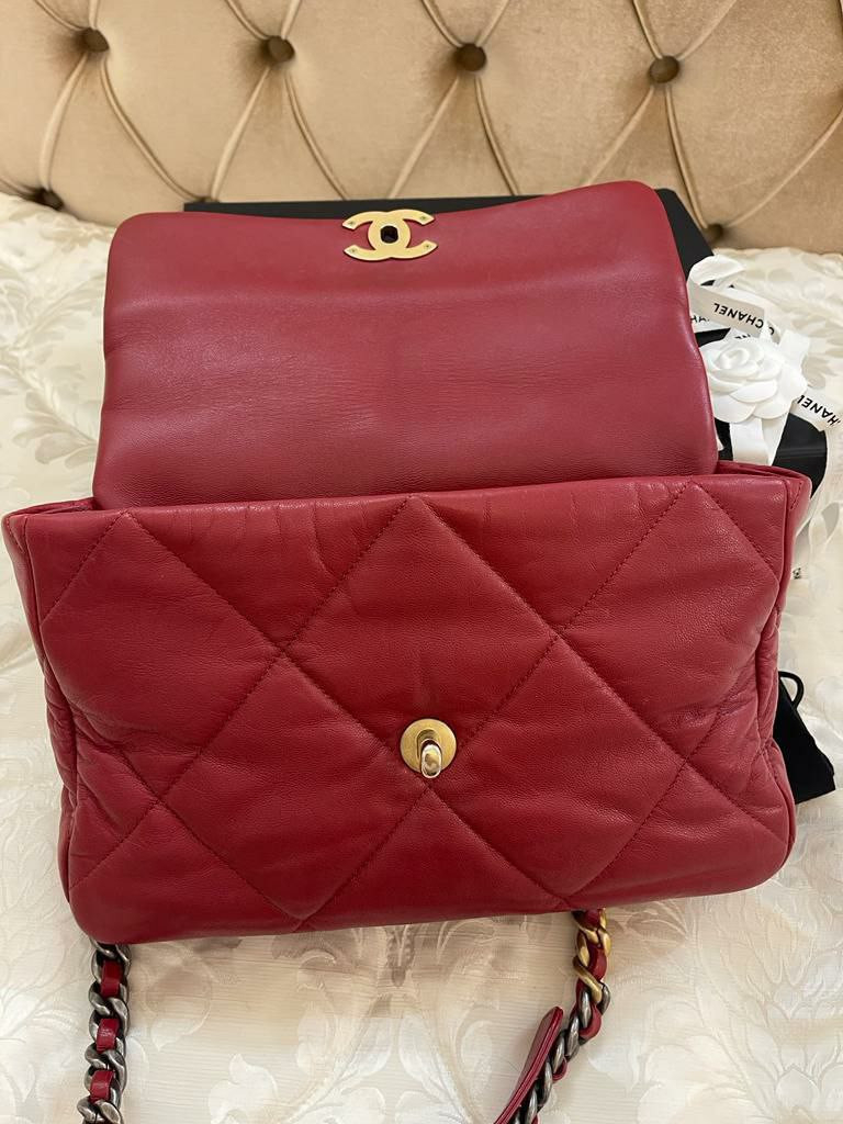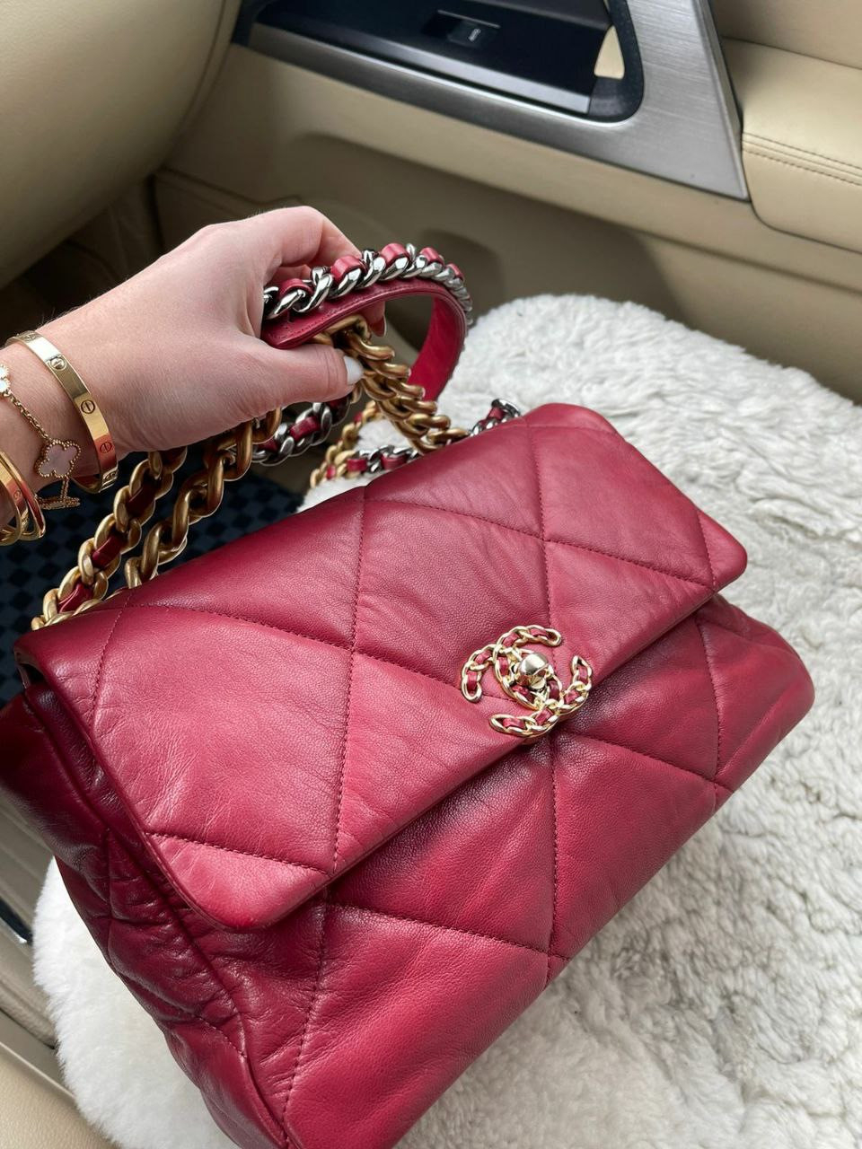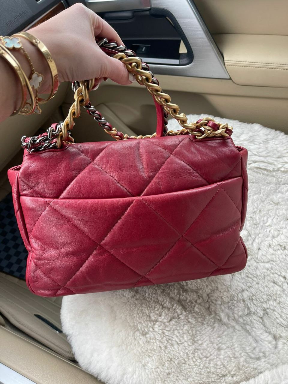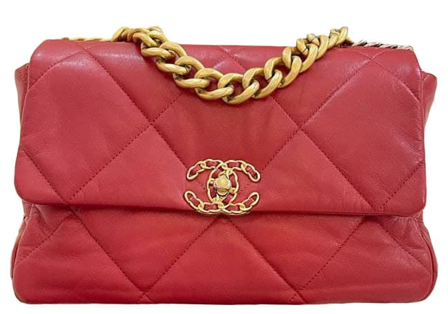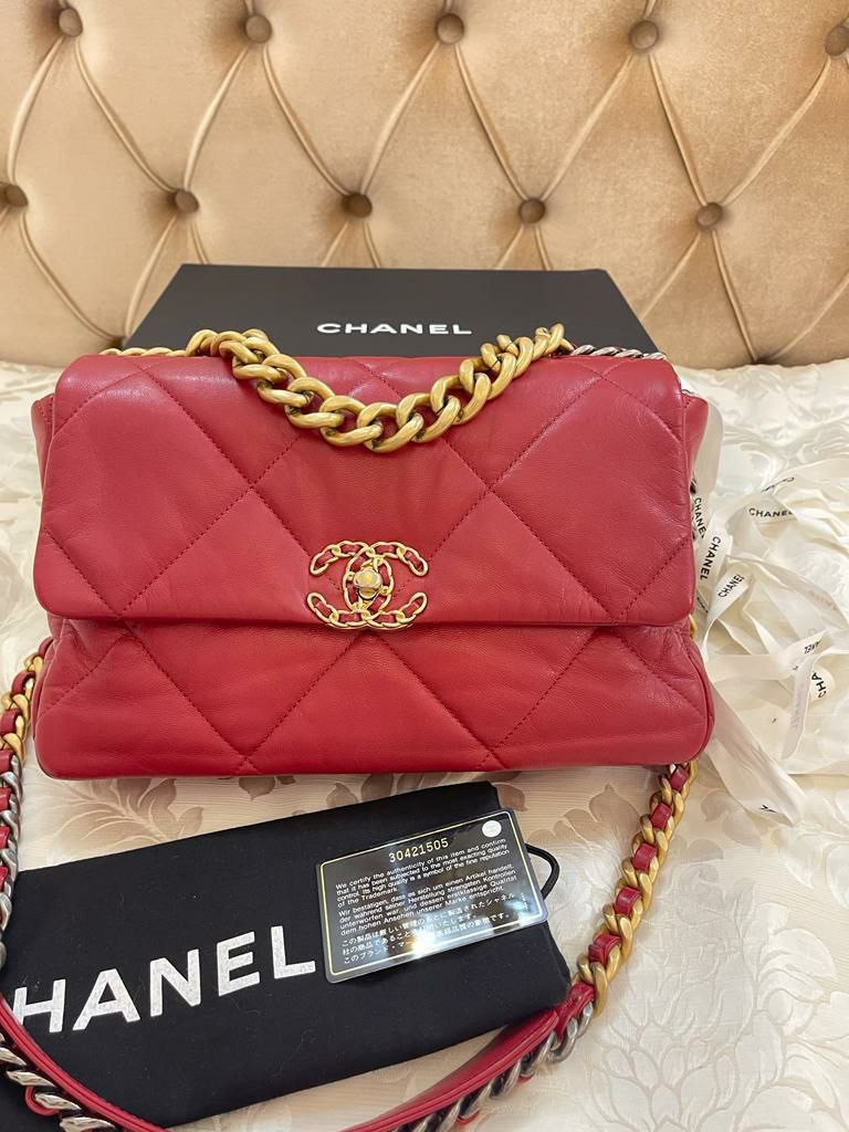 Красная сумка с клапаном Chanel 19 из стеганой козьей кожи