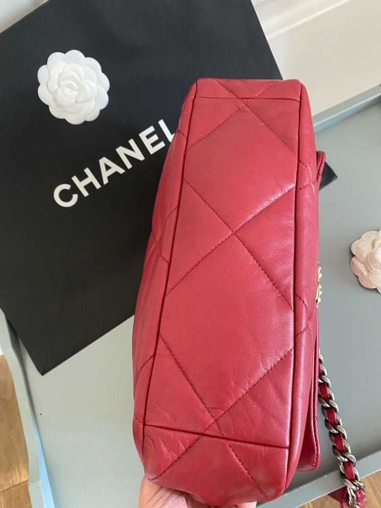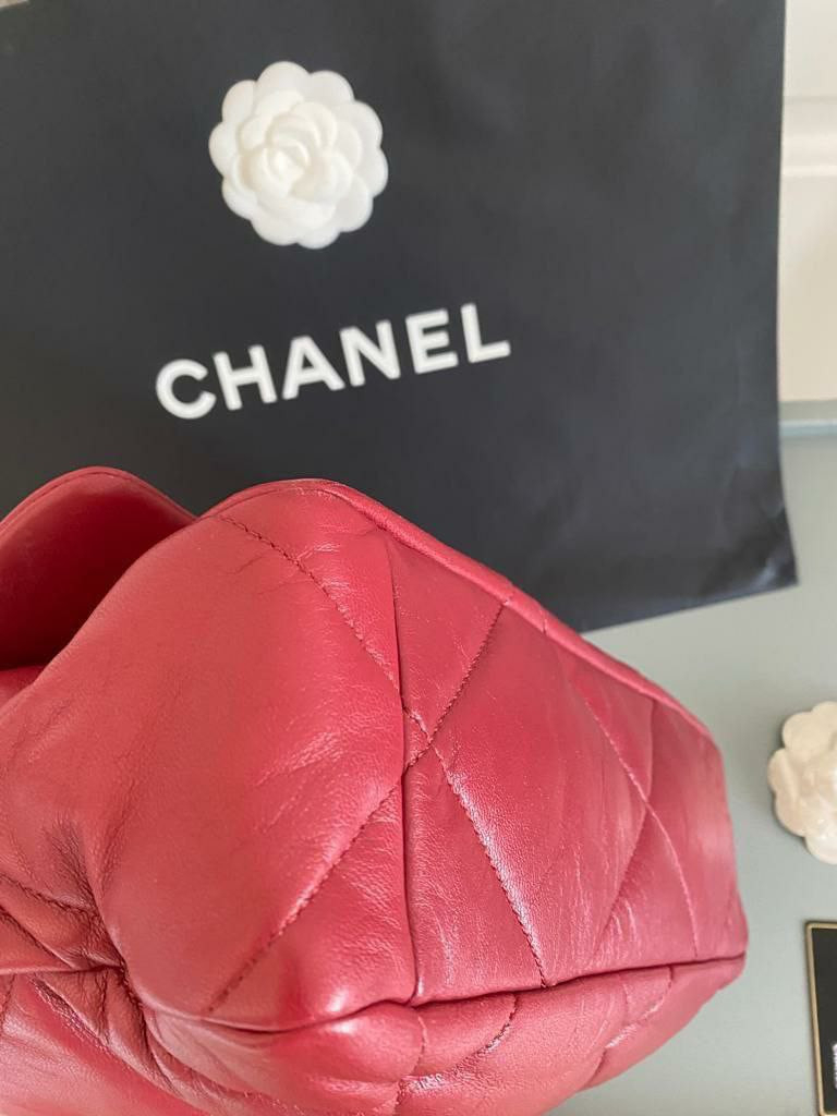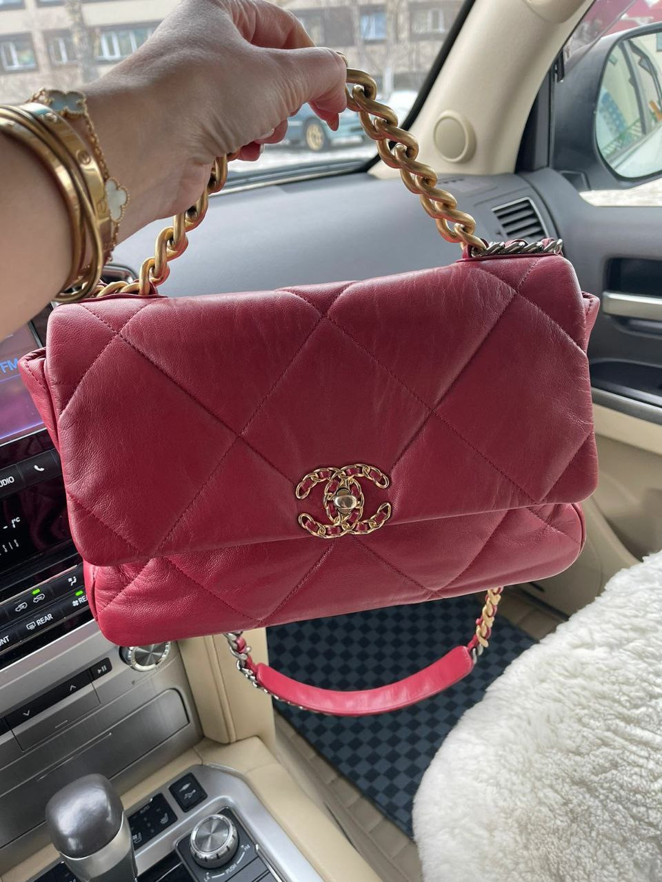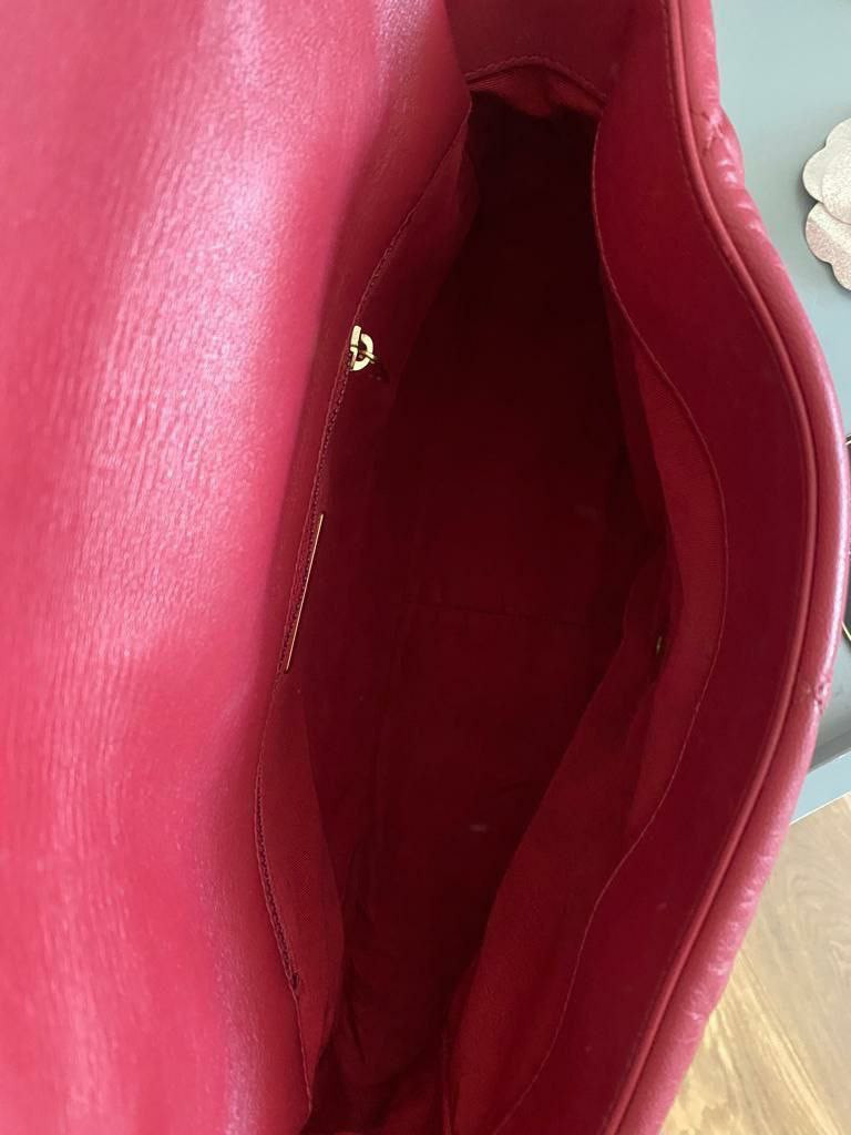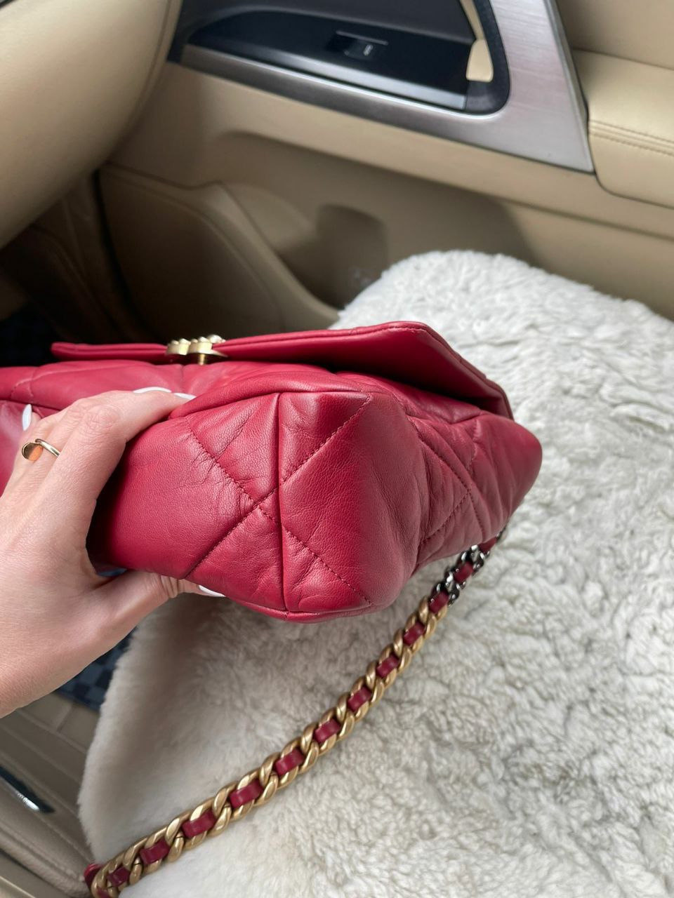 Подлинная сумка с клапаном Chanel 19 из красной стеганой козьей кожи Chanel бывшая в употреблении. Практически не носилась. Коллекция 2022 года. Покупалась за 5100$.Сумка изготовлена из высококачественной козьей кожи в стильном красном цвете с золотистой застежкой СС в виде переплетенной цепочки. Аксессуар сочетает в себе самые узнаваемые дизайнерские коды Шанель и молодежную эстетику, превращающие эту модель в настоящий хит среди коллекционеров. Дополненная ремешком-цепочкой, сумка может использоваться как клатч или носиться на плече. Изделие привлекает эластичной кожей мягкой текстуры и знаменитой ромбовидной прострочкой более крупного узора. Такое дополнение наряда внесет ярких красок в образ, подчеркнув великолепный вкус модницы.